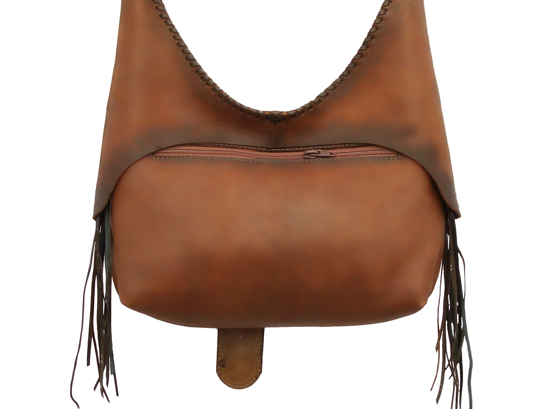 Bolso con asa corta y flecos. Estuche para colocar dos botellas de 100mL. Bolsillo en la parte interior y posterior.